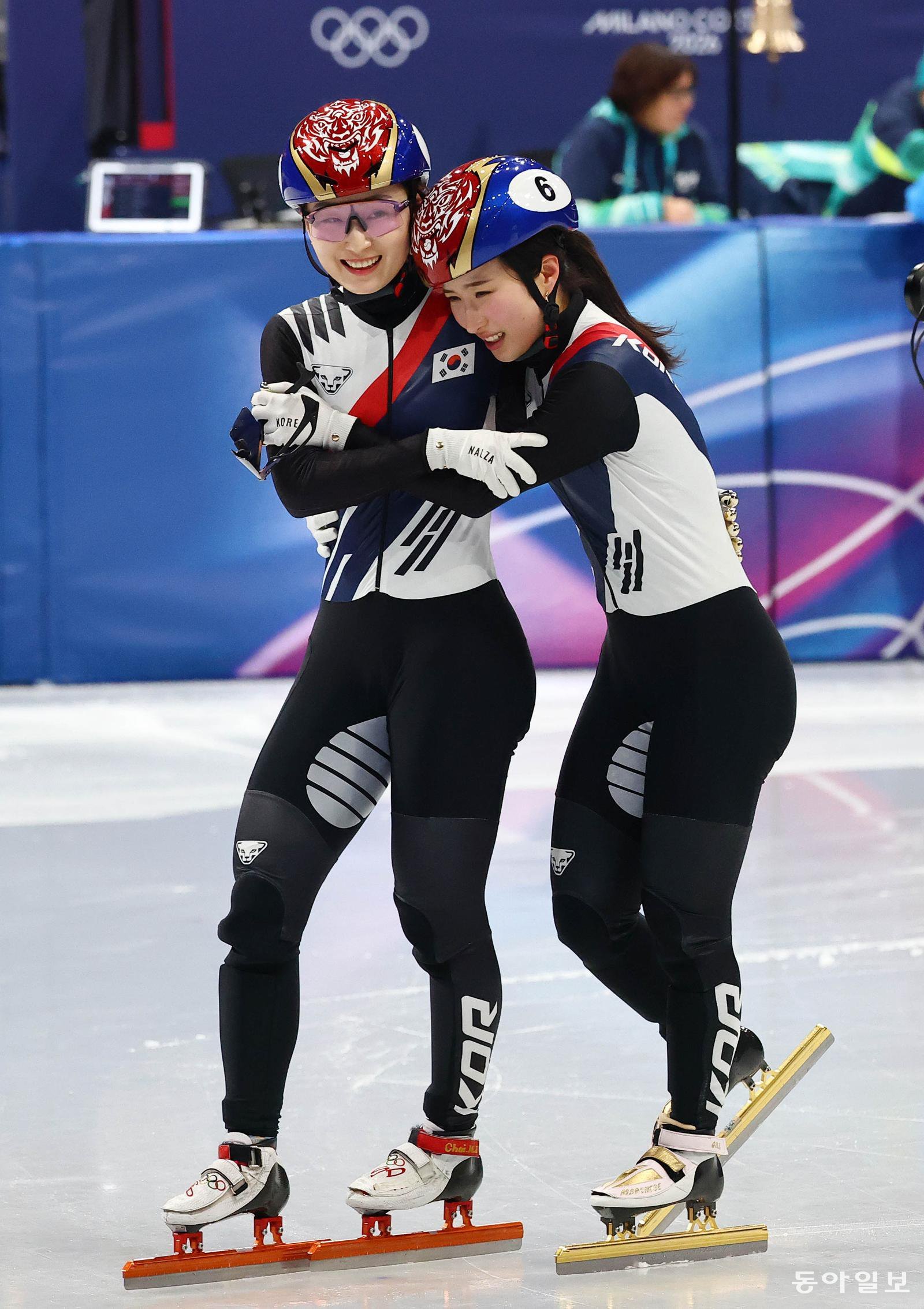 “앞에서 만나자.”함께 레이스를 나설 때마다 하던 약속을 올림픽 마지막 경기에서 지켰다. 한국 여자 쇼트트랙을 이끄는 쌍두마차 김길리-최민정이 21일 밀라노 아이스스케이팅아레나에서 열