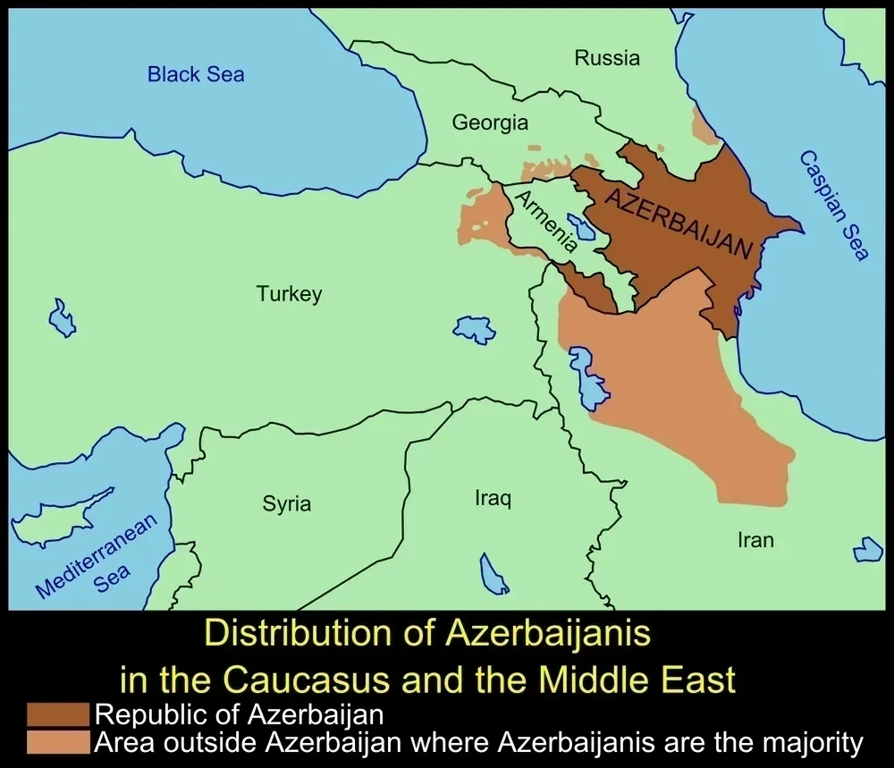 아제르바이잔공화국과 아제르바이잔 이란주 지역 ( 동아제르바이잔주 , 서아제르바이잔주 , 아르다빌주 , 잔잔주가 이 지역에 속합니다) .